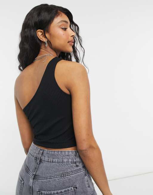 Black one shoulder crop sales top
